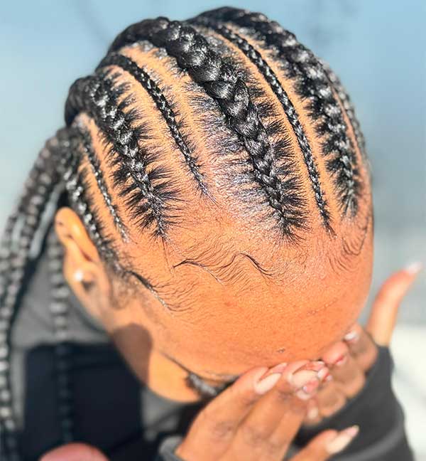 ✨ Braiding – From classic cornrows to trendy box braids, we offer protective and stylish braid designs that last. Braids not only protect your natural hair but also give you a versatile look for any occasion.